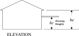 - Mean building eave height, he: